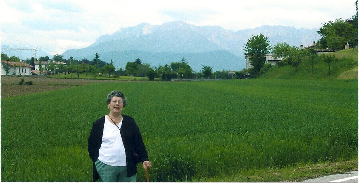 My grandparents marker at the cemetary in Tricesimo and mom on our visit in May of 2004 to her home town. We had a great time.